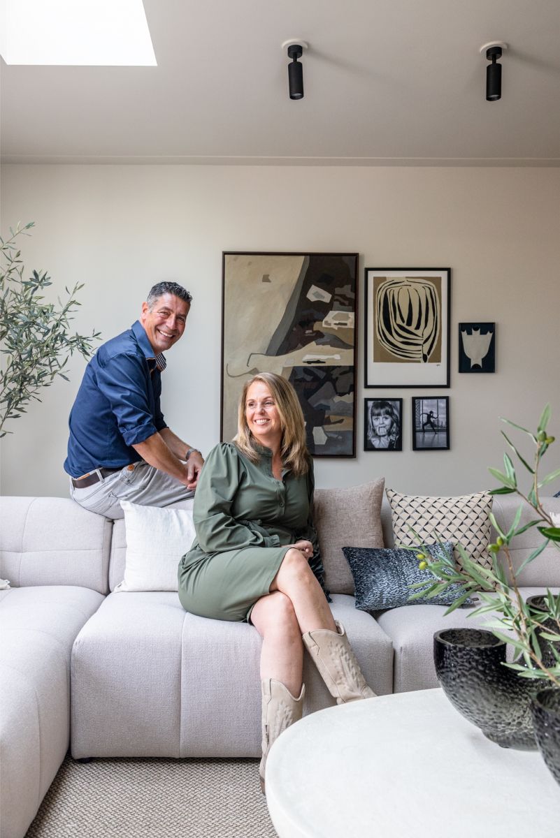 De basis van de nieuwbouwwoning van Harold en Annemarie was prima, maar het ontbrak er nog aan sfeer en eenheid. Daarbij hielp het ook niet dat de twee erg verschillende smaken hebben wat betreft interieurinrichting. Zo houdt Harold van prints en donkere kleuren, terwijl Annemarie juist blij wordt van een lichte en landelijke stijl. Liza Wassenaar wist hun uiteenlopende smaken perfect te vangen in een warm en sfeervol geheel, wat ik met veel plezier heb vastgelegd.